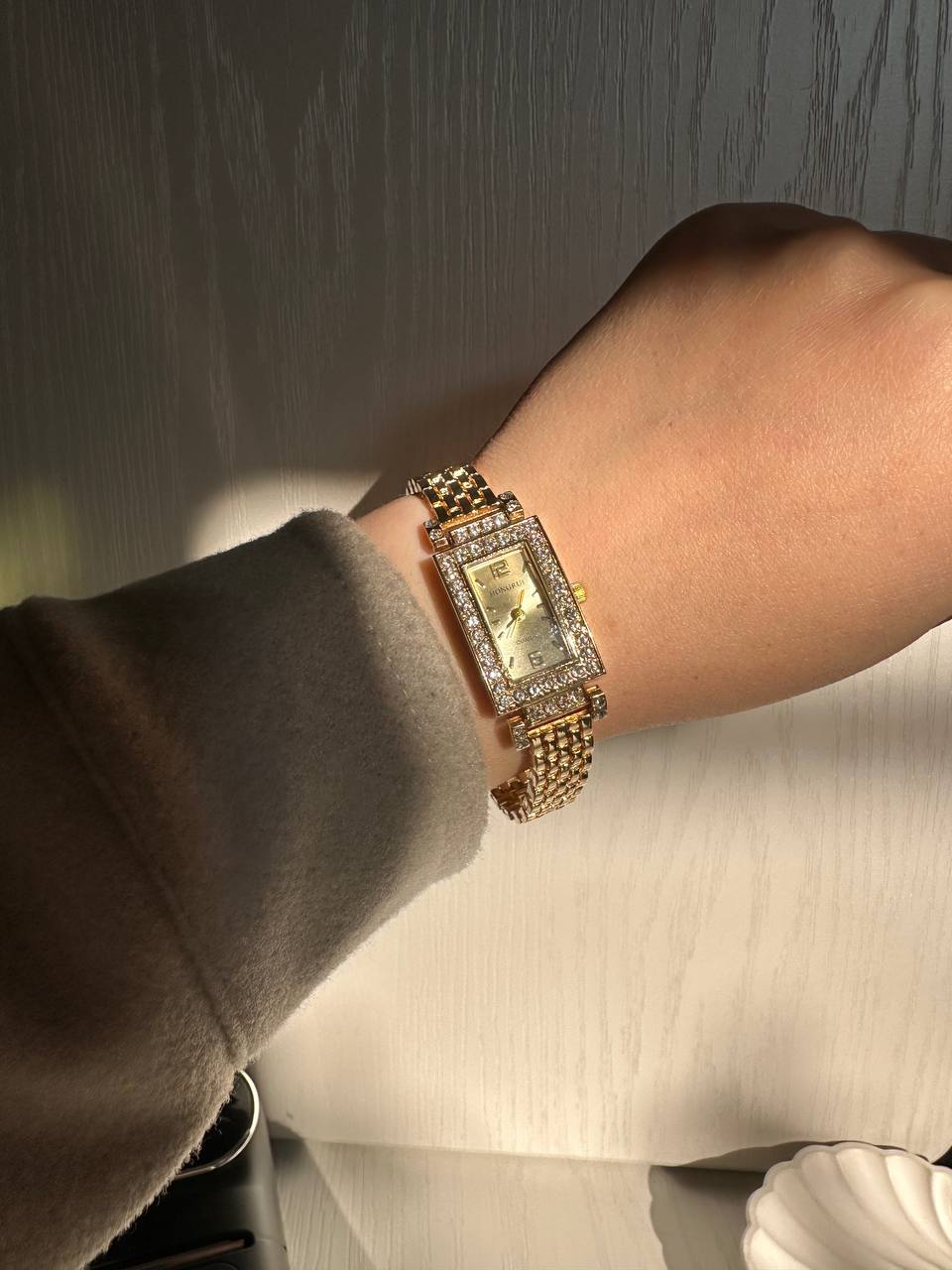 ساعت صفحه مستطیل طلایی نگیندار HONGRUI