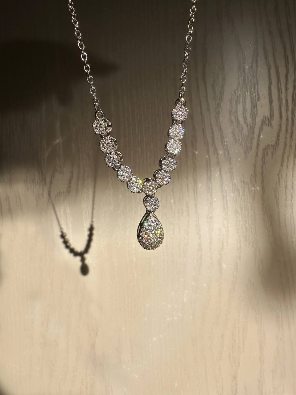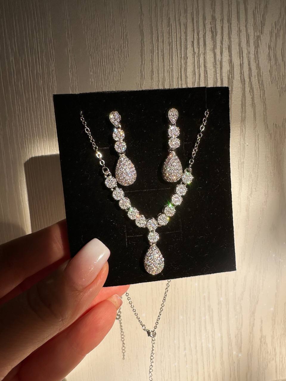 نیمست جواهری اشکی طرح طلا سفید